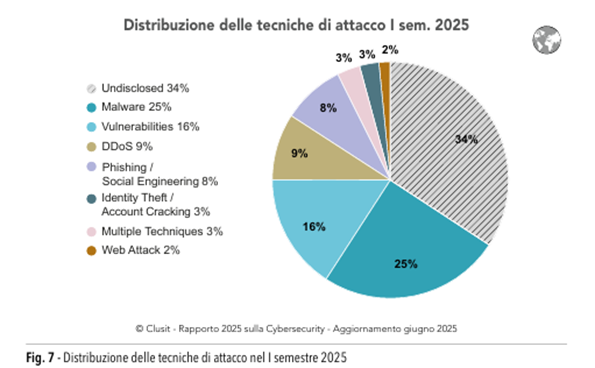 CLUSIT attributes 34% of all incidents in the first half of the year to malware, with ransomware dominating the scene due to its high financial yield.