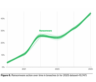 Verizon reports a 37% increase in ransomware attacks, now present in 44% of data breaches, while ENISA documents an even more alarming 83.5% share of ransomware-related threats.